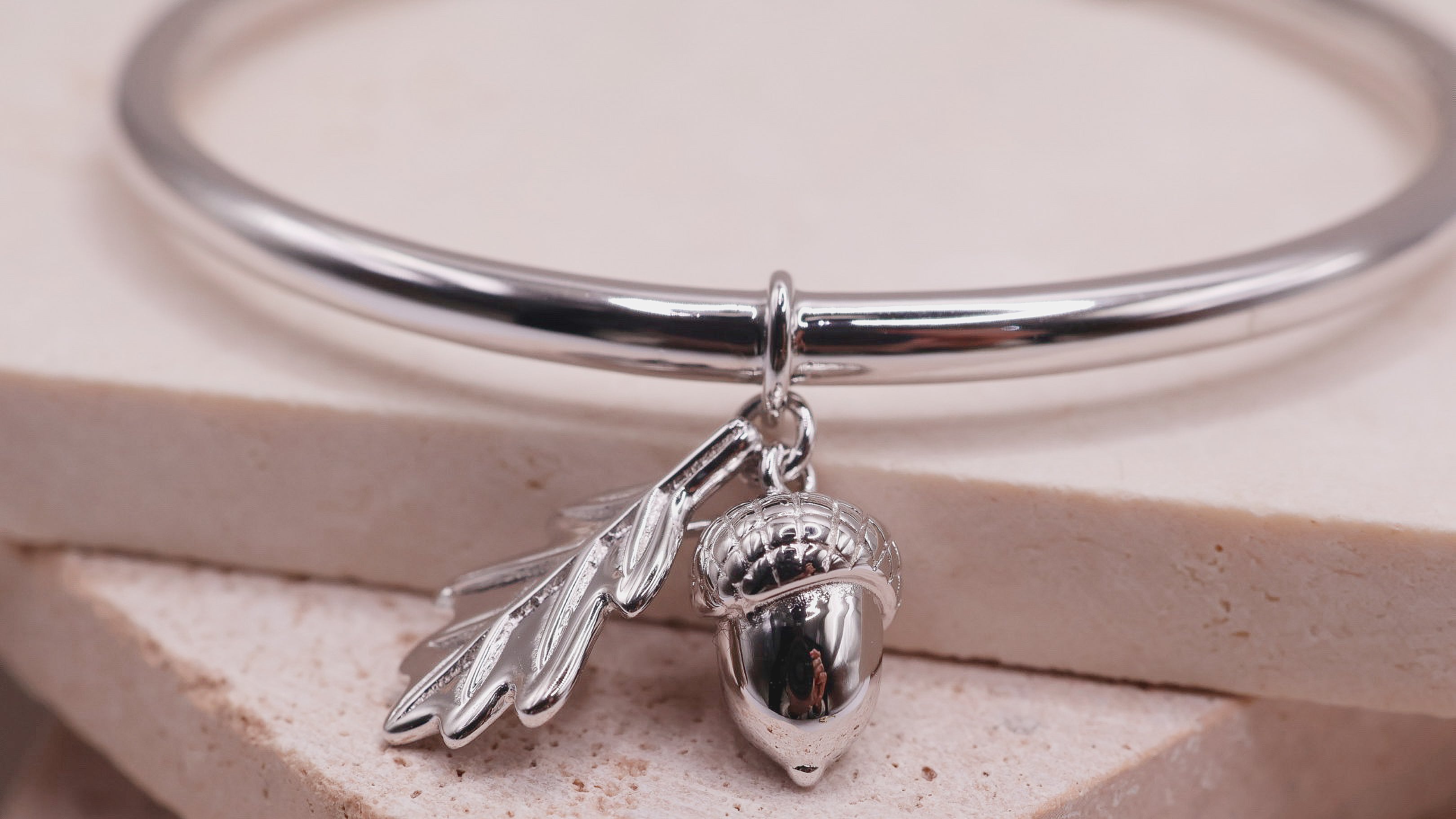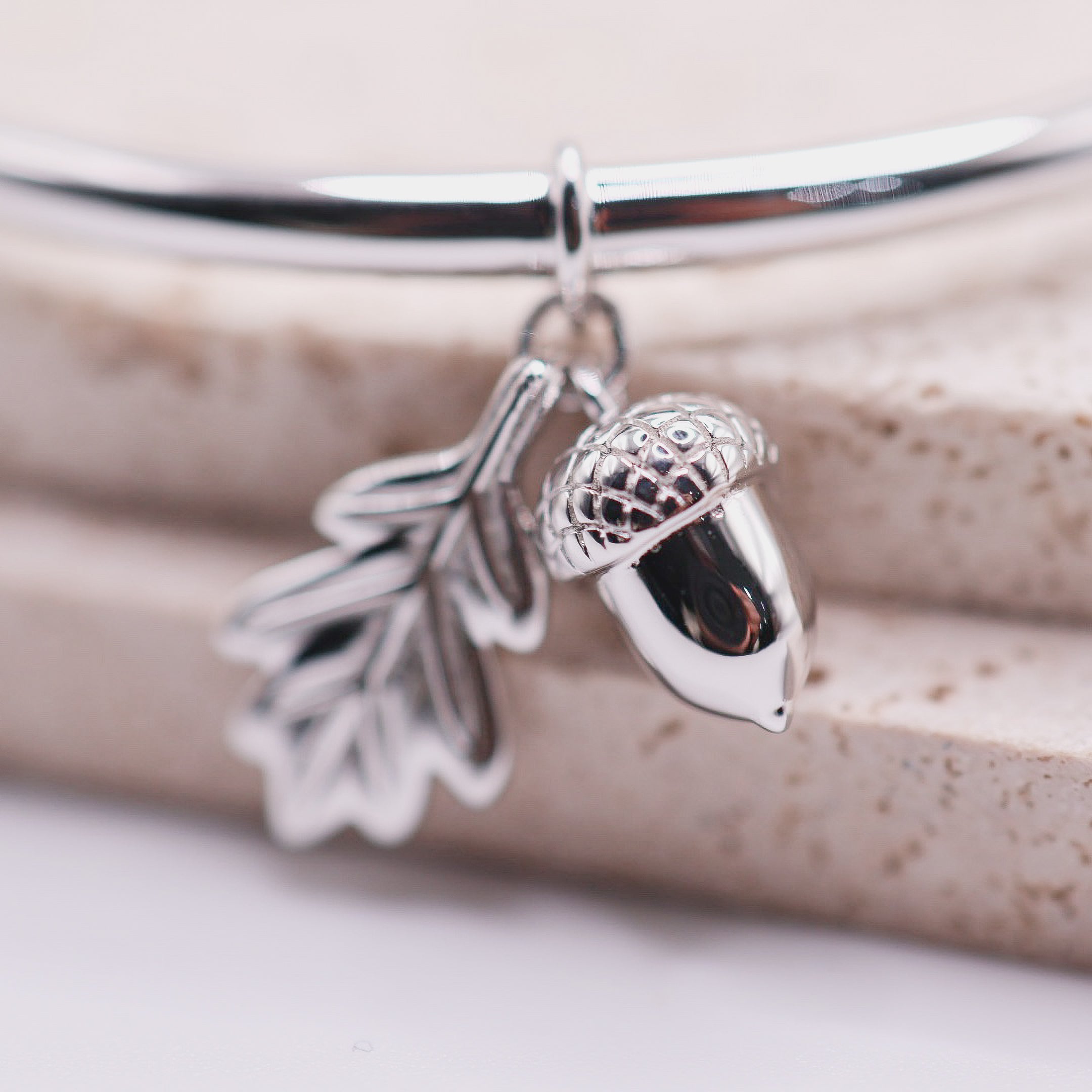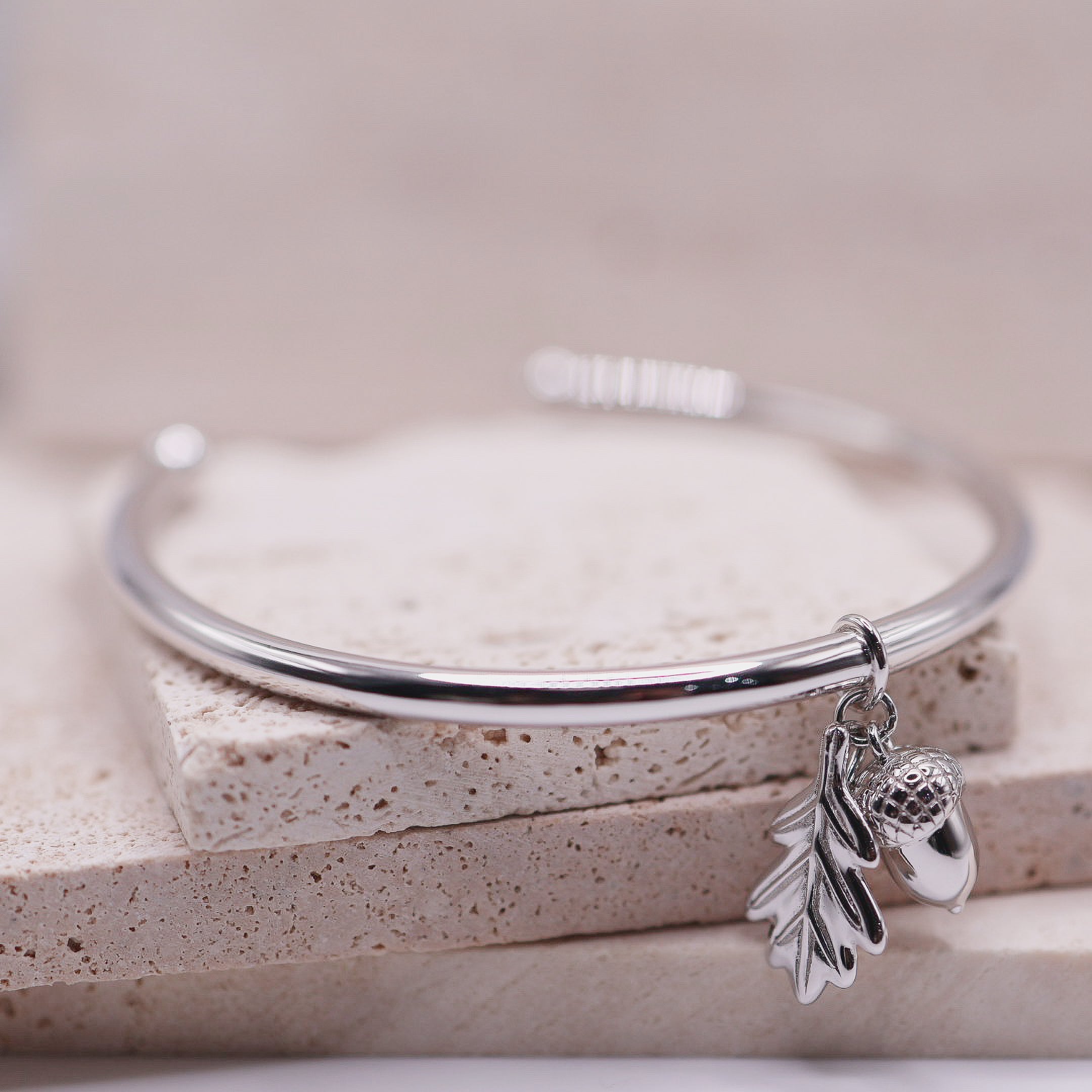 The adjustable open design offers a comfortable, secure fit, while the sculpted acorn and oak leaf charms symbolise resilience, steady growth and quiet strength. Elegant yet meaningful, this is a timeless piece designed to be worn daily and kept for years.