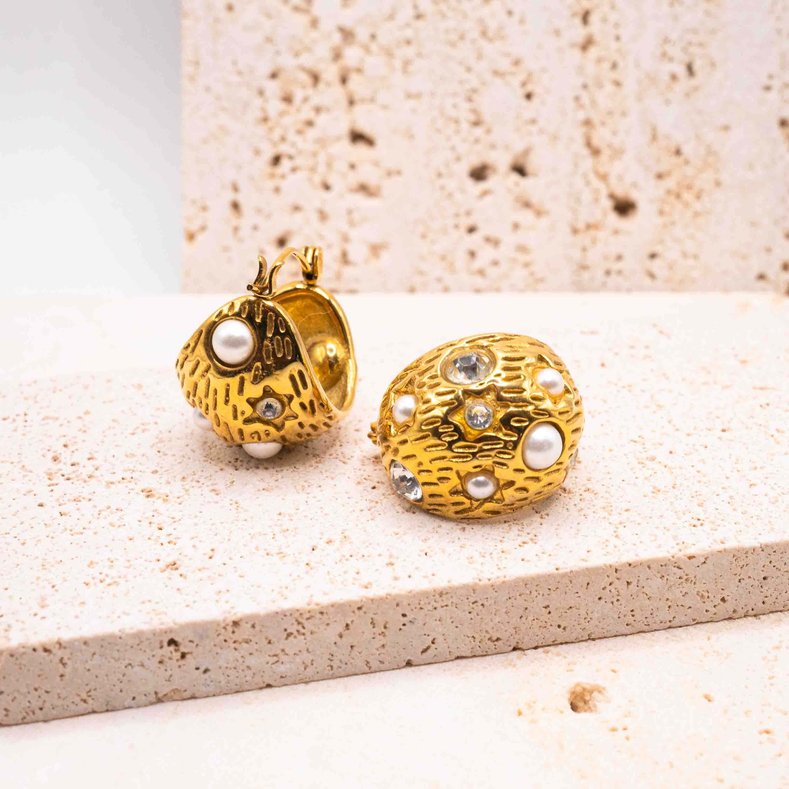 Chunky Pearl & Crystal Hoops – 18K Gold-Plated Stainless Steel