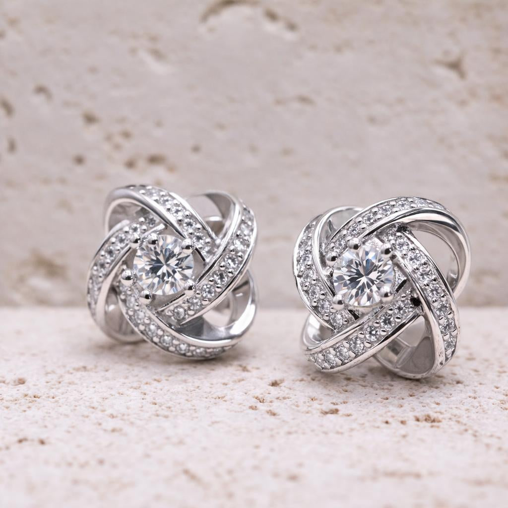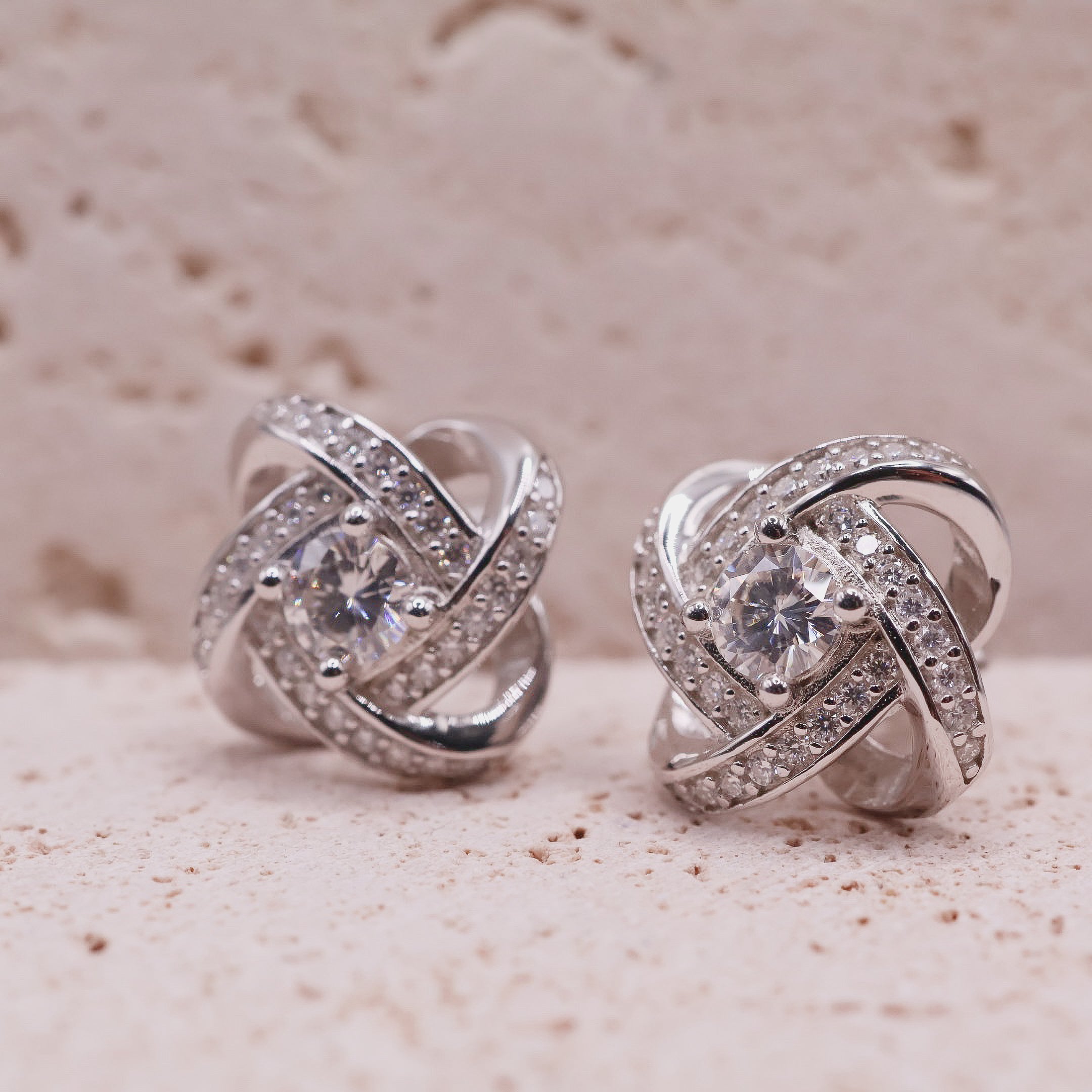 Moissanite Knot Stud Earrings – Sterling Silver (8mm)