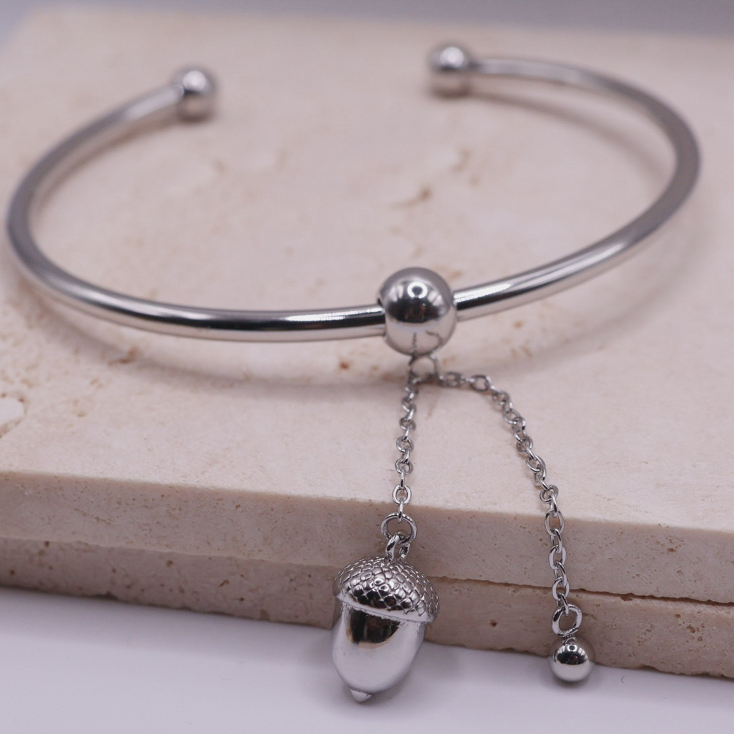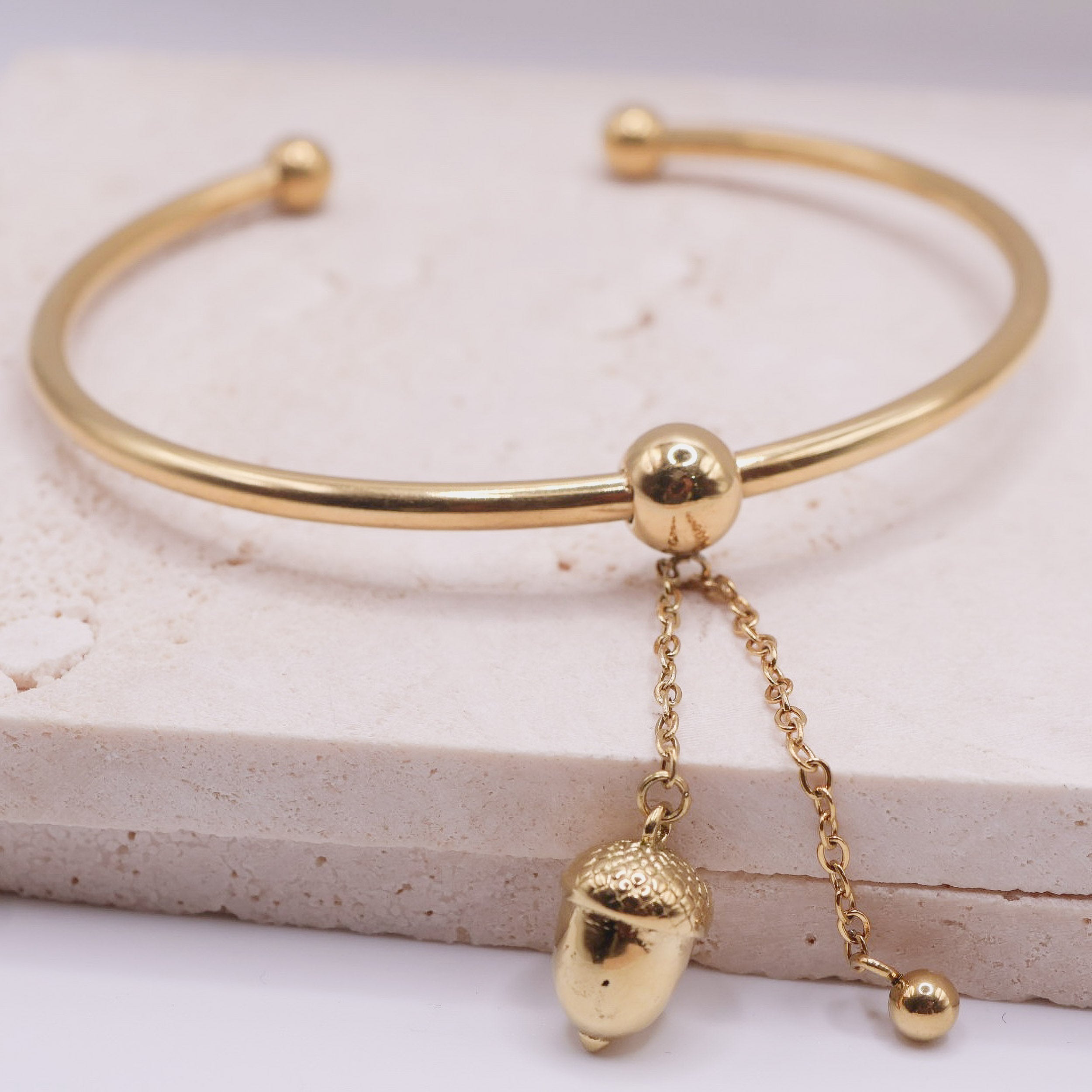 ✔ Sculpted acorn charm with fine chain detail