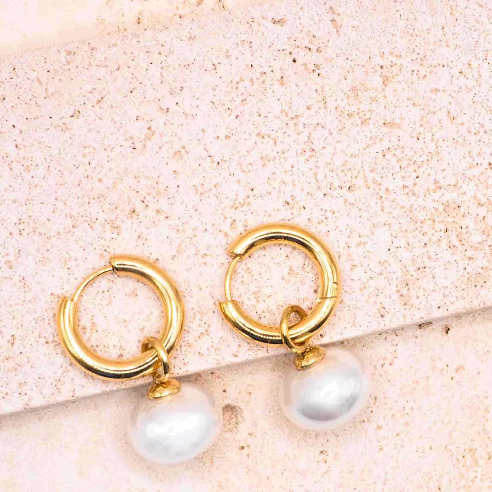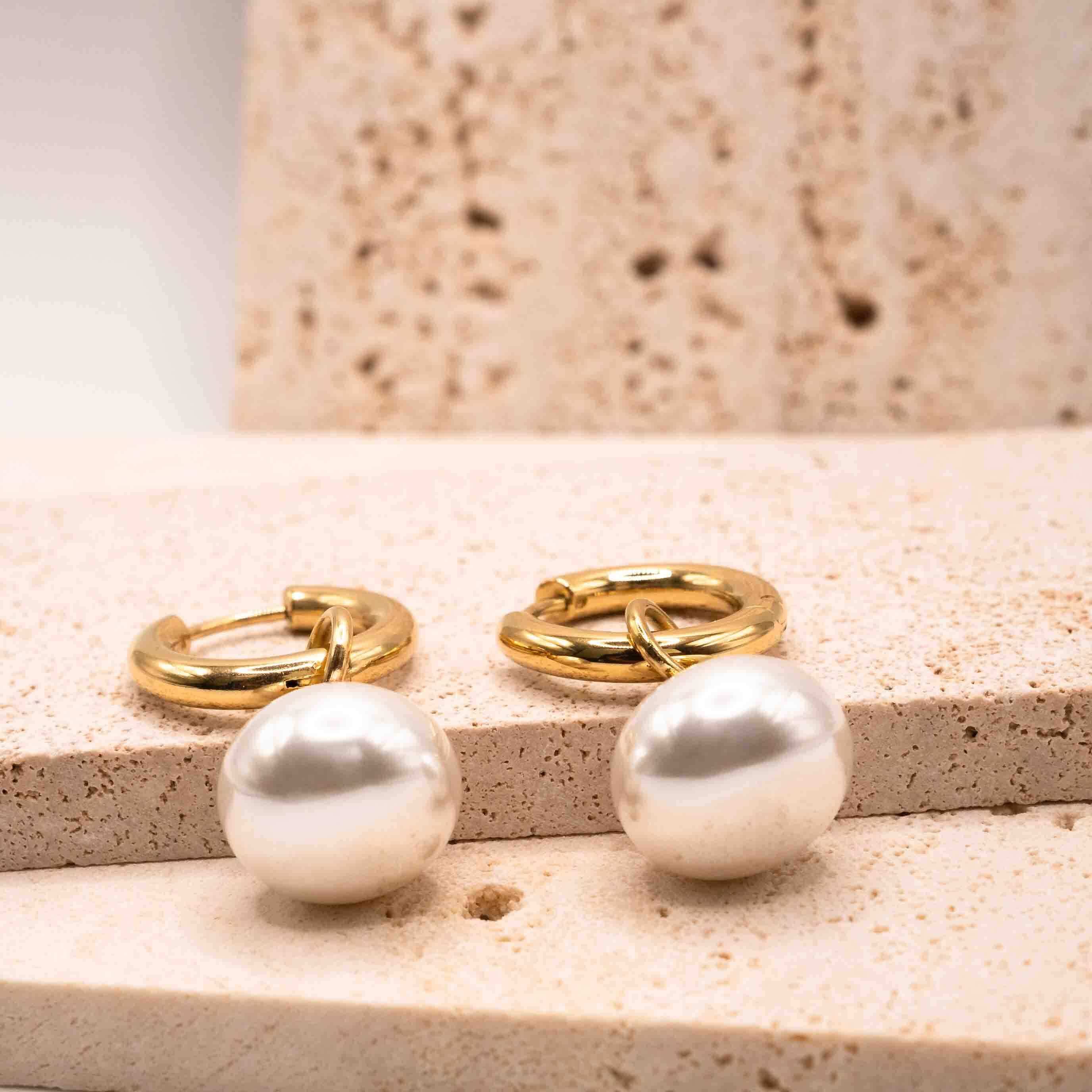 Pearl Drop Mini Hoops – 18K PVD Gold-Plated Stainless Steel