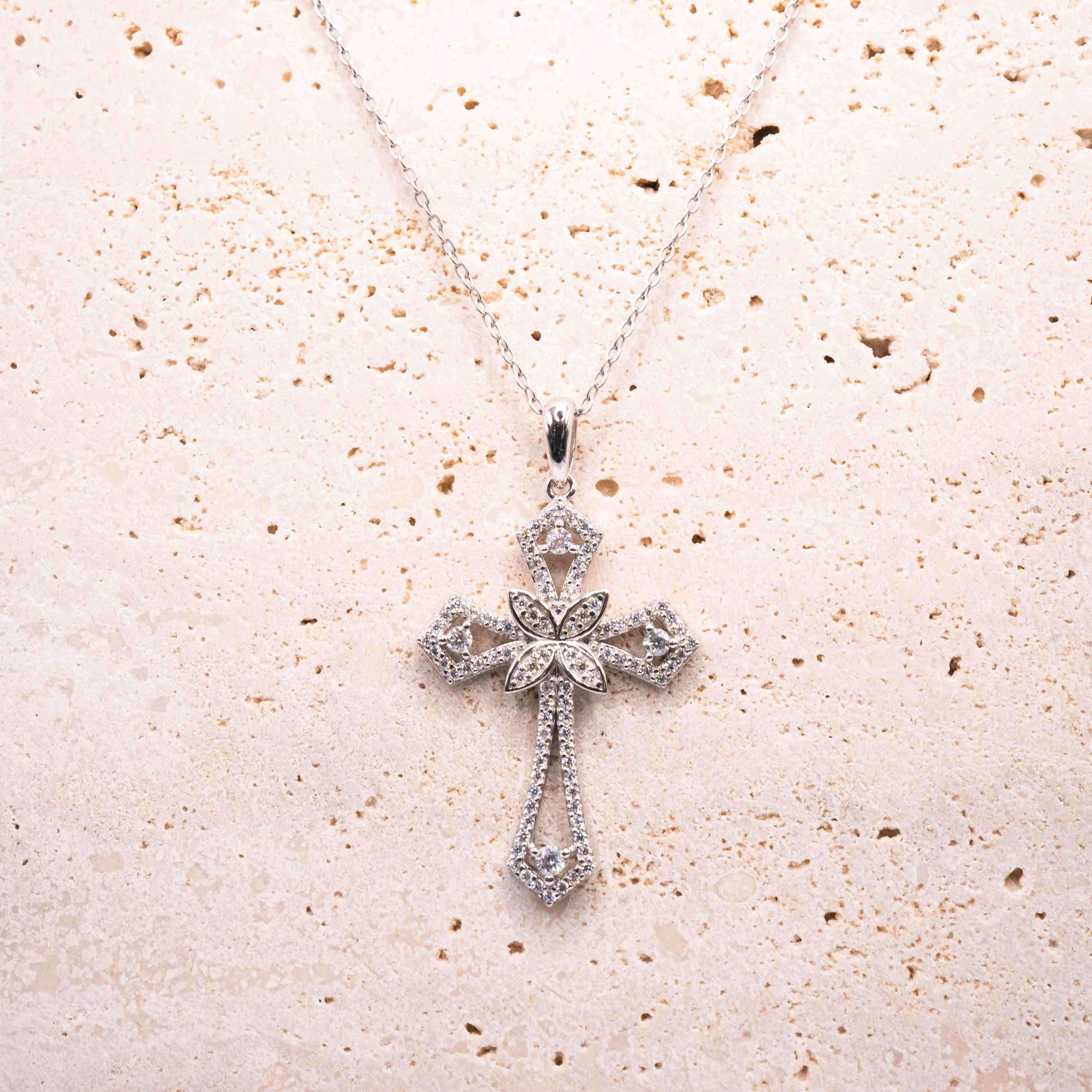 Radiant Cross Necklace – Sterling Silver | Rhodium-Plated