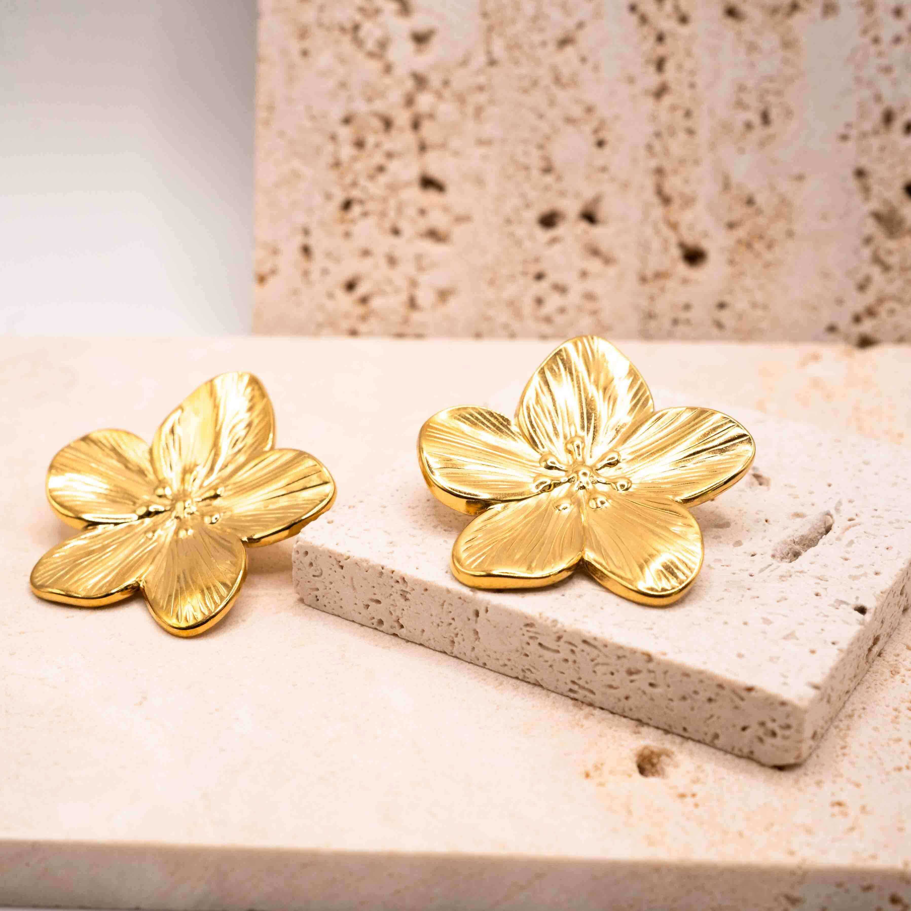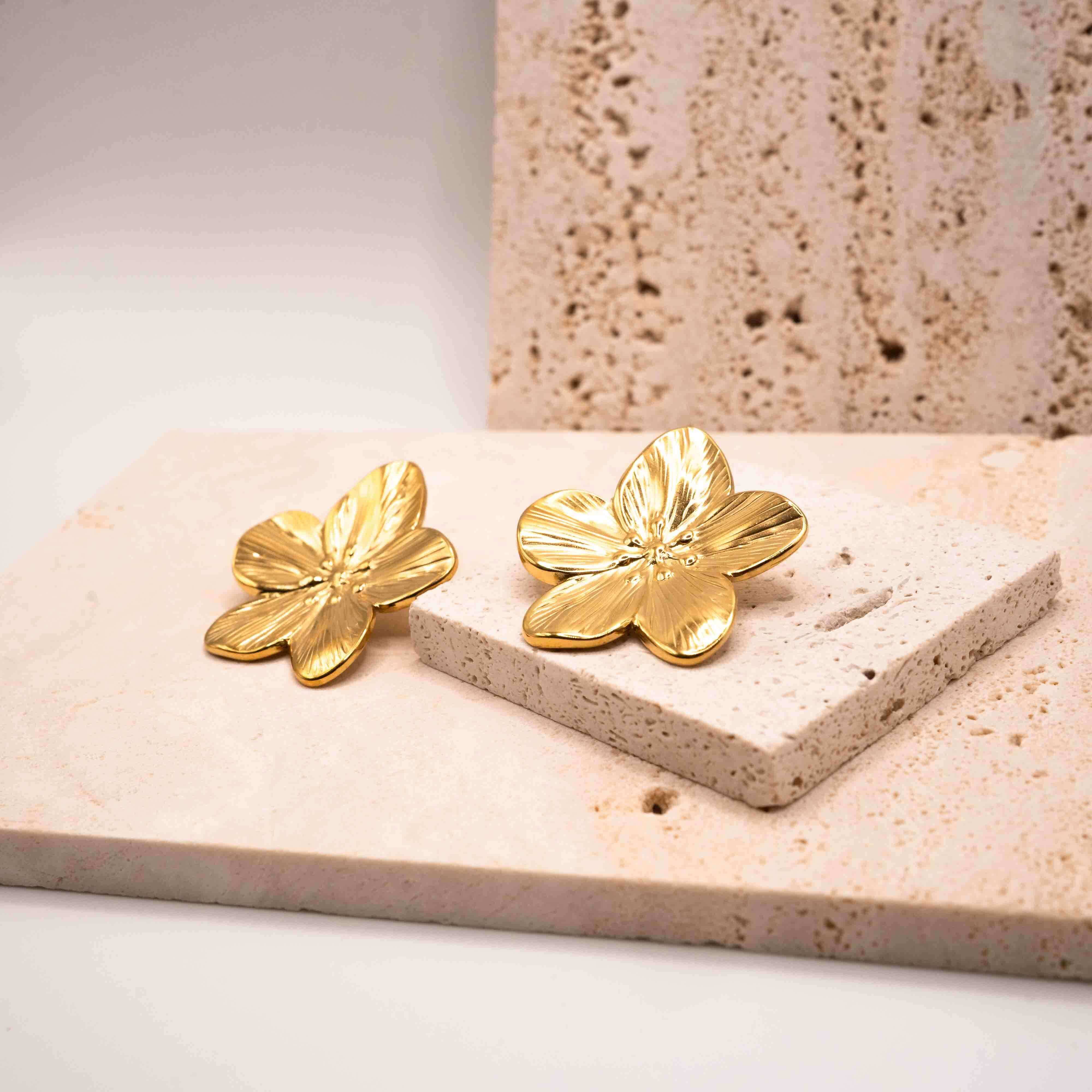 Sculpted Floral Statement Studs – 18K PVD Gold-Plated Stainless Steel