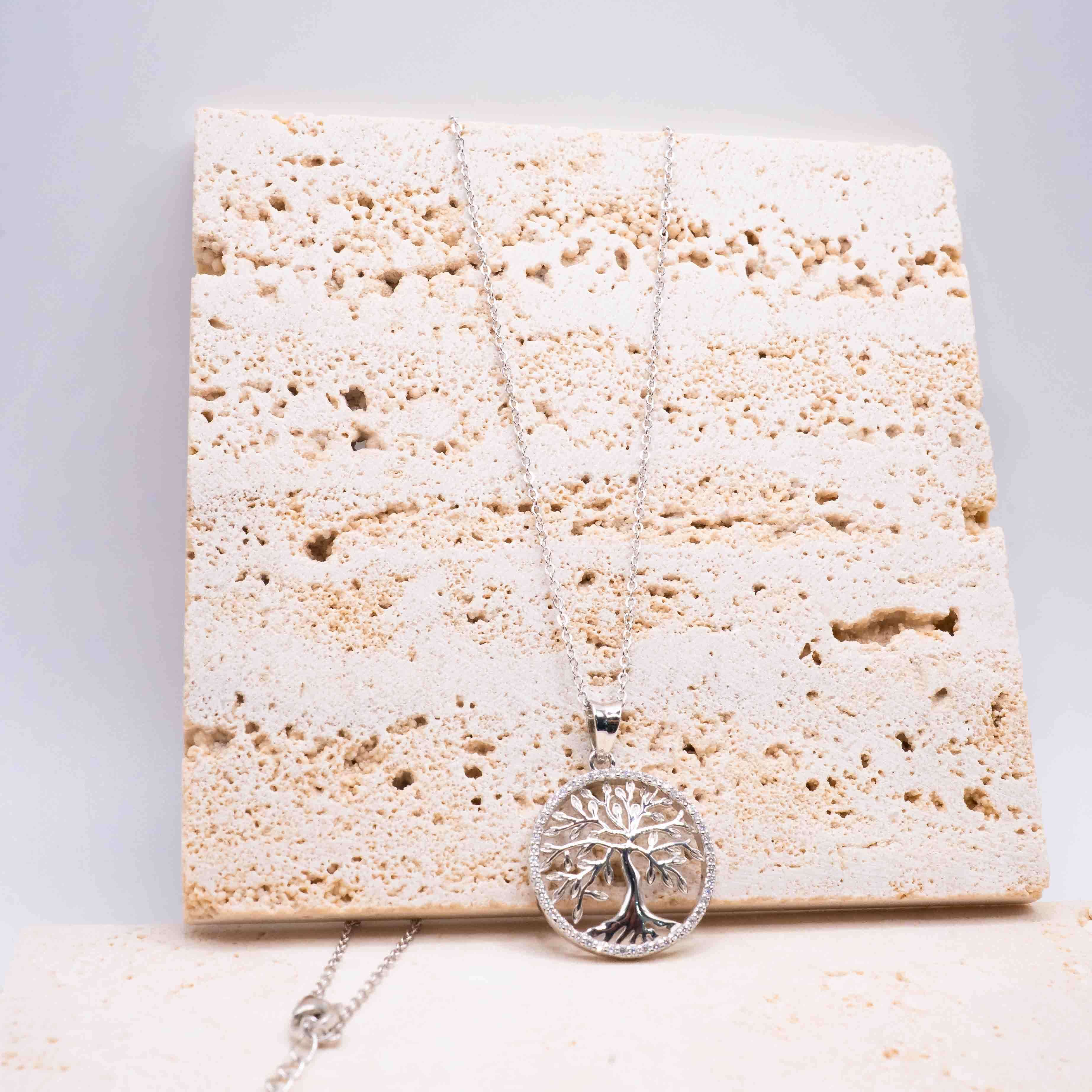 Tree of Life Necklace – Rhodium-Plated Silver